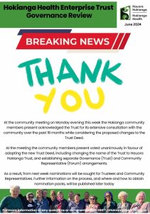 We are reviewing our Trust Deed and would like your feedback. Please see the following pānui which details where and when our Community Feedback Meetings are held this week!